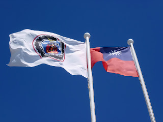 赤い旗は皆さんが知っている筈の台湾国旗だ。(厳密言えば、中華民国の国旗だけど。)白いのは何かはっきり分からないけど、基地が有るから、多分何か軍隊関係の旗だと思う。