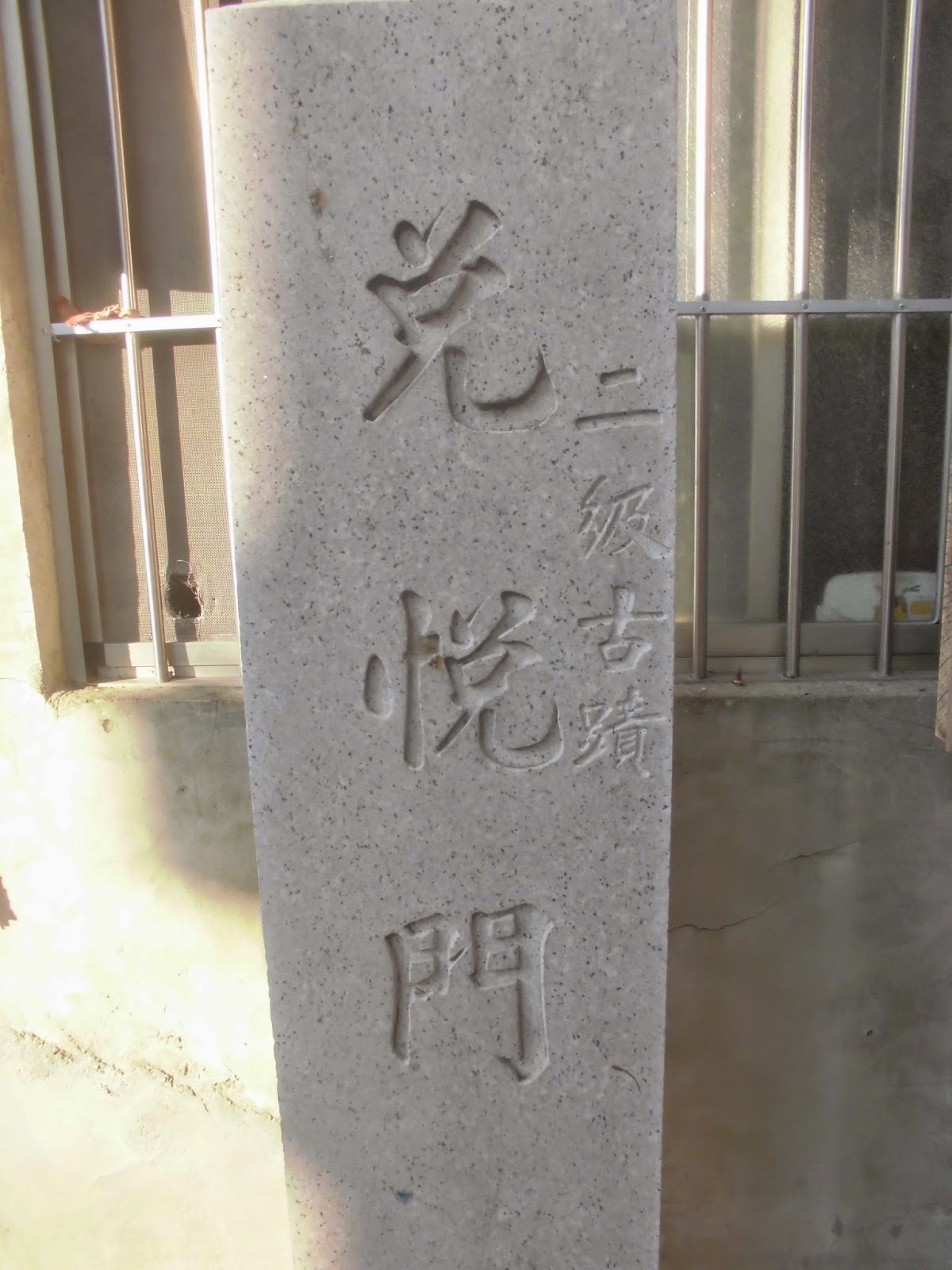 好,我們到了「兌悅門」。這扇門也是以前府城的一扇。從日本時代開始改馬路,大部分的門被除去了。這扇門是一扇還殘存的。