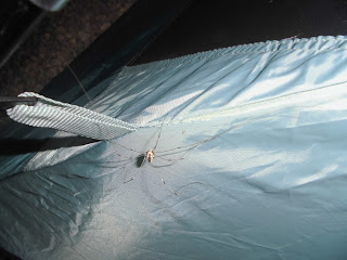 I went upstate to the Columbia County area for a week after staying in New York City for two weeks. I was camping (sort of; I was in a tent at any rate) up there, and I saw this Daddy Longlegs on my tent. (Apparently they can be called "Harvestmen" too, though I've never heard anyone use that name.)